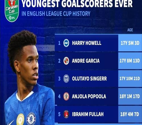 在10月30日的英联杯第四轮比赛中,切尔西小将埃斯特旺与阿森纳小将恩瓦内里分别取得进球。英联杯历史最年轻进...