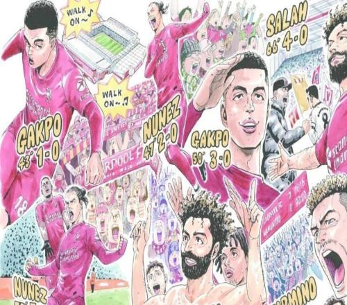 北京时间明天晚上23:30,利物浦将迎来英超第8轮主场对阵曼联的比赛,赛前,日本漫画出版社讲谈社发布了纪念漫画,其...