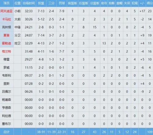 掘金那边,约基奇空砍21分14板9助准三双,穆雷砸出22分6板3助。