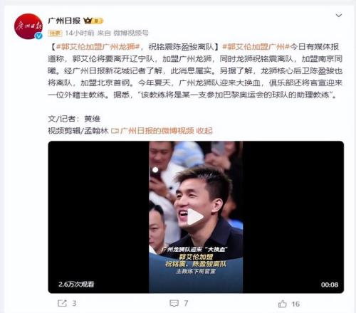 广州龙狮队最近发布的新赛季海报里,压根没出现郭艾伦的身影,海报上全是年轻队员的面孔。