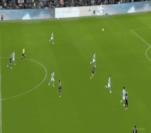开场只有59秒,曼城就闪电领先。和B席做出精妙配合后,努内斯倒三角传中,福登四两拨千斤,轻松将球打进。