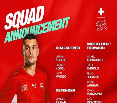 瑞士本期大名单:扎卡领衔,阿坎吉、科贝尔、巴尔加斯、恩多耶在列